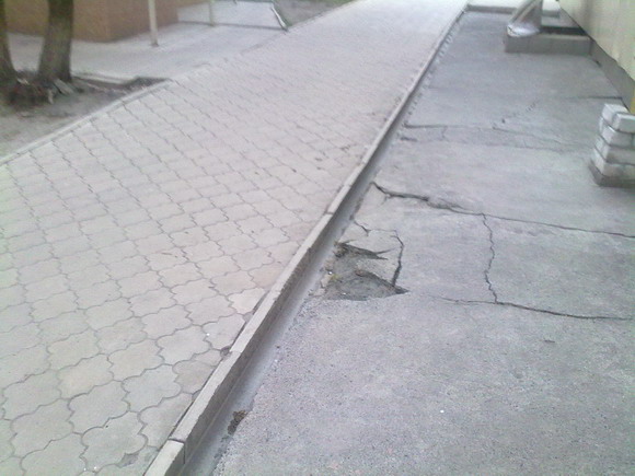 Хотел бы обратиться к г-ну Ткаченко, то бишь, директору компании "Интервитражсервис". Сергей Федорович, Вы так защищали перед жильцами ул. Дворцовой свое "детище" магазин "МТС", что вблизи 17 и 19 домов по вышеназванной улице. Предлагаю Вам и другим людям посмотреть, что же с ним случилось с момента постройки, а ведь не прошло и 6 лет, а также новые "шедевры" 2011 года. И как Вам?