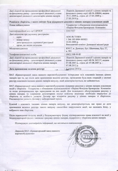 Фраза - Дематериализация акций - это что-то ! Спрашивал у работников НКМЗ