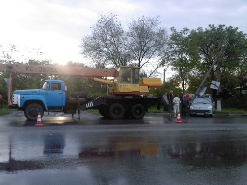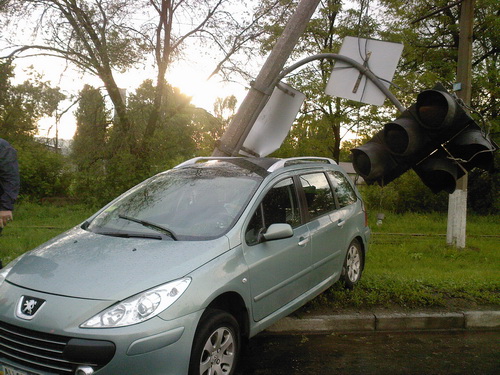 В Краматорске 30 мая по улице Орджоникидзе, машина марки Peugeot сбила светофор, регулирующий движение на пересечении улицы Кима и улицы Орджоникидзе.