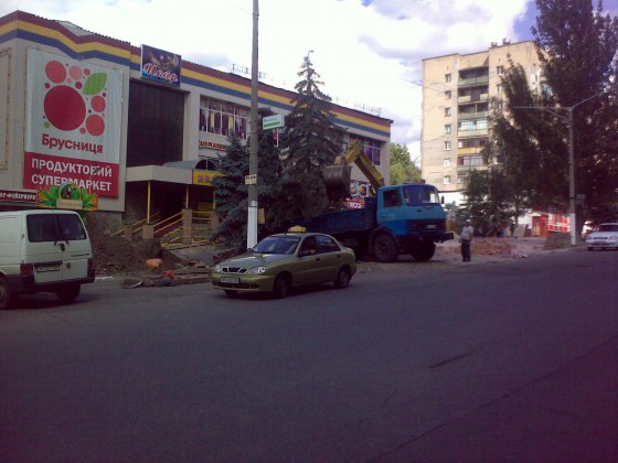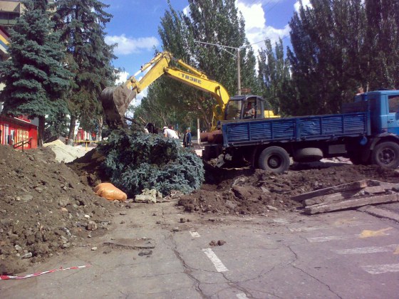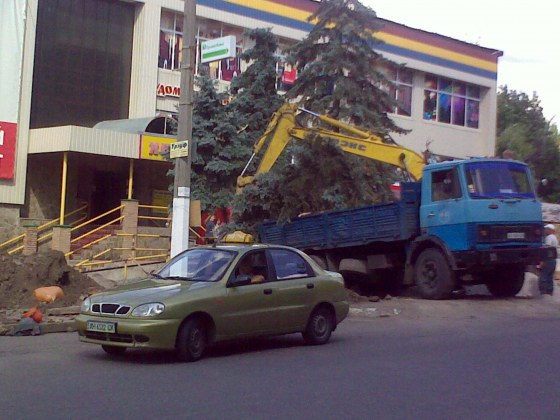 Сегодня 07.07.2010 возле бывшего "Прогресса" с корнем выломали голубую ель высотою 9-10м и при помощи экскаватора загрузили на "Камаз" и вывезли. Варвары. Явно без всяких разрешений так, как слышно было -давай быстрее вон снимают. Неужели так и сойдет с рук?