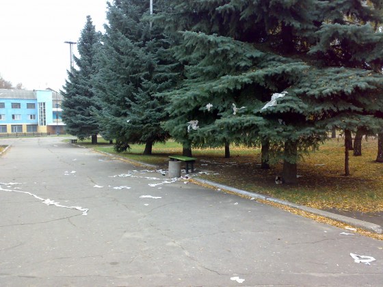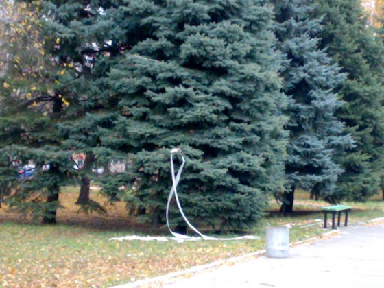 Хороший праздник -Хеллоуин... Яркий, красочный... С присущим только ему маскарадом. Один из самых дешёвых маскарадных костюмов - обернуться туалетной бумагой. Тут уж кто во что гаразд: кто только лицо, а кто и во весь рост. Вот только утром, мягко говоря, не очень приятно находить остатки костюмов. Вот такая у нас культура...