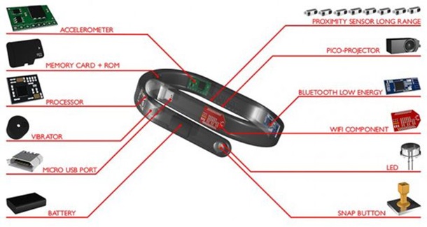 Изображение при этом интерактивно - восемь встроенных датчиков приближения отслеживают движения пальцев пользователя, а собственный процессор браслета анализирует полученную информацию и передает ее телефону.