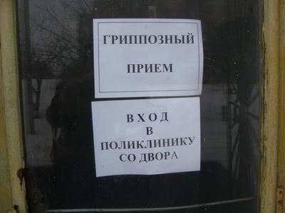 Вот так выглядит входв поликлинику для краматорчан, болеющих гриппом