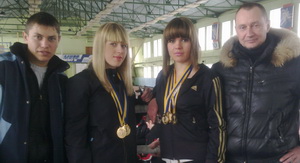 Это Будник Вера, студентка СГПУ, завоевавшая золото в трех разделах, Анна Охрей, студентка ДИТМ, завоевавшая золото в двух разделах, и учащийся ВПТУ N 65, Йовнаш Роберт, бронза.