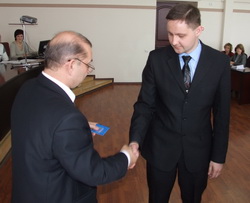 На сессии ему были вручены удостоверение и значок депутата городского совета. Согласно решению своих коллег, он будет работать в составе постоянной комиссии по вопросам промышленности, транспорта и развитию малого бизнеса.