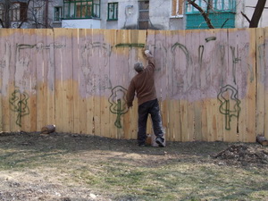 Теперь застройщики ежедневно закрашивают неудобные для них лозунги на заборах стройплощадки, а жильцы каждую ночь пишут их заново.