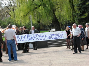 Участники митинга приняли резолюцию, в которой потребовали отставки: мэра Краматорска Геннадия Костюкова, его заместителя Станислава Захарова, секретаря горсовета Андрея Борсука, директора ООО «Краматорскводоканал» Александра Роганова и головы местного управления Пенсионного фонда Украины Михаила Боброва. Интересно, что в резолюции одной из причин требований об отставке вышеперечисленных граждан названо «проведение в Краматорске социальных экспериментов, несовместимых с курсом президента Украины Виктора Януковича».