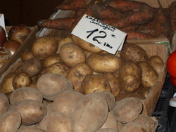 «НК» решили выяснить, откуда привозят и сколько стоит молодой картофель на краматорских рынках. Самым дешевым оказался египетский, его продают по 10-12 грн./кг. А килограмм пакетированного молодого картофеля, выращенного во Франции, стоит 40 грн./кг.