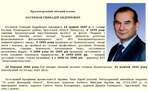 Самое интересное, что в официальной биографии Геннадия Костюкова, размещенной на сайте горсовета значится, что в октябре 2010 года он был «переизбран на должность мэра города».