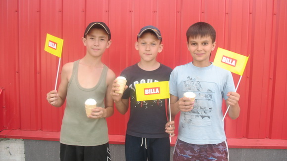 1 июня в супермаркете Billa к Дню защиты детей прошла акция: детям раздавали мороженое. Ее начало было запланировано на 5 вечера, но уже за полчаса до раздачи у входа толпилась ребятня. Правда, многих ждало разочарование: получить бесплатный пломбир мог не каждый, для этого необходимо было сделать в супермаркете покупку хотя бы на 10 гривен и предъявить чек. Некоторые ребята принесли из дома по несколько чеков, но и тут досада: по правилам акции один человек мог получить только одно мороженное.
