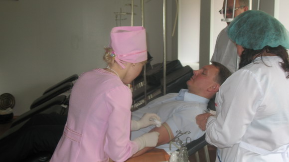 Кроме депутатов которые прибыли туда в 10-15 кровь сдавали в этот день но несколько раньше и казаки Краматорского казачьего полка им. Степана Таранова Всевеликого Войска Донского! А только в 10-00 часов приехали фоторепортеры и засняли депутатов. Казаки же продолжат даную еще и 14.06.2011 года в 08-00 час.!