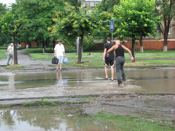 Что бы там ни болтали про вечно брюзжащих журналистов, но ситуация, когда после дождя в Краматорске практически невозможно перебраться с одной стороны улицы на другую, а транспорт из-за забитых ливневок буквально ползет даже по центральным дорогам, вовсе не рискуя забираться во дворы, - такая ситуация всё-таки не совсем нормальна. Вопрос о том, куда делись былые пешеходные мостики, снимаем как дурацкий и общеизвестный: давным-давно украдены, сданы в металлоприемки и пропиты. Ставим вопрос по-другому: почему не ставят новых?