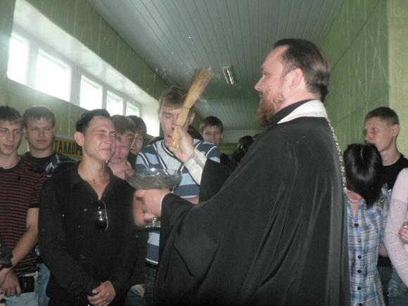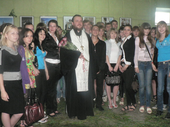Протоиерей Сергий из Святотроицкого храма освятил не только выставку, но и весь Центр в целом. Оригинальным оформлением фотовыставки оказалась зелень, которой украсили пол и стены помещения. В завершение мероприятия Протоиерей Сергий в адрес аудитории сказал такие слова: «Пусть для вас эта выставка станет первым шагом к изучению Святого Мира, который на самом деле очень интересный» и щедро окропил молодежь святой водой.