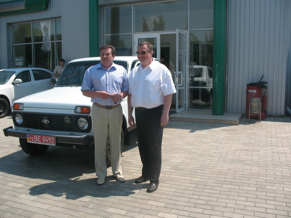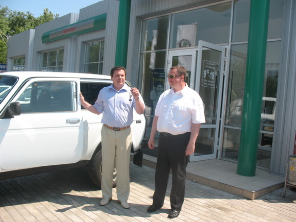 20 июня в автосалоне «Талисман» главному врачу горбольницы №2 Виталию Савинкову вручили автомобиль «Нива». Меценатом стал завод ЭМСС, а вручали ценный подарок его представители - Сергей Близнюк и Александр Шевченко.