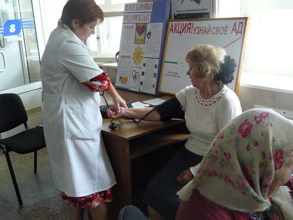 Здесь они получали памятки, при необходимости -- настойчивые рекомендации посетить участкового врача, а некоторых, у кого давление «зашкаливало» (например, 220/140 мм рт.ст.) -- пришлось уговаривать вернуться домой и вызвать «Скорую помощь».