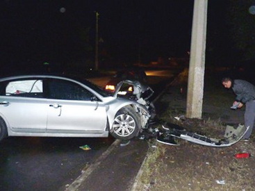 На Лазурном водитель разбил об опору новенький "Ниссан"