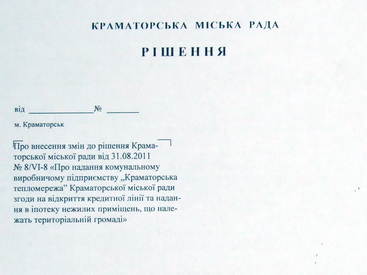 Что бы получить кредит в 4 миллионов, городской совет Краматорска согласился заложить здание ценой 1,14 миллиарда гривен. По крайней мере, такой вывод можно сделать из проекта решения городского совета, который депутаты получили накануне голосования.