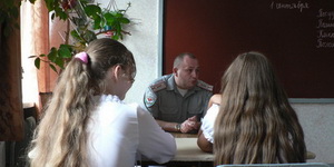 Начальник Отдела по делам детей Андрей Давискиба навестил ООШ№5. Здесь его встретили радушно — давно знают и давно приглашают. Может, благодаря таким мерам ни один ученик этой школы и не состоит на учете в милиции ни как проблемный ребенок, ни как привлекавшийся к уголовной ответственности. Всем детям Андрей Николаевич пожелал никогда с ним не встречаться. «Не хочется мне видеть вас в своей рабочей обстановке и тем более отправлять вас в тюрьму», - пригрозил начальник Отдела криминальной милиции по делам детей.