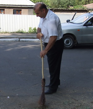 Судя по тому, что на газоне возле поссовета лежали две мотокосы, УРСАС все же надеялся, что мэр все-таки возьмет это устройство в руки и внесет свою лепту в борьбу с сорняками на территории родного поселка. Однако Геннадий Костюков бодро прошагал мимо косы в направлении метел и лопат. Как потом рассказали по секрету работники УРСАСа, мэр отказался от покоса из-за того, что «дома у него косилка другой конструкции». А вот Станислав Захаров от возможности попробовать себя в роли газонокосильщика не отказался. Причем, ему так понравилось это занятие, что он остановился только после того, как выкосил весь газон. А вот Геннадий Костюков все это время бодро орудовал метлой. В отличие от городских субботников, на которых он всегда пытался спрятаться от репортеров, в родном поселке мэр с удовольствием позировал, общался с прессой и даже шутил. «Работать не стыдно! Стыдно не работать и при этом жить в грязи!» - неоднократно подчеркивал градоначальник. Что послужило причиной такого радостного настроения, осталось загадкой – то ли это влияние последнего летнего солнышка, то ли настроение мэру поднимал пригласительный билет на открытие «Донбасс Арены», который оранжево просвечивал сквозь карман его белой рубашки.