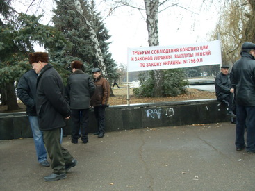 Несмотря на накрапывающий с утра дождь, около 30 чернобыльцев собрались у здания исполкома сегодня, 6 декабря. Они, как и раньше, требуют выплаты отвоеванных через суды пенсий, но денег на это у государства нет.
