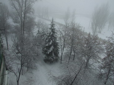 Первый день нового года выдался в Краматорске очень снежным. Снег идет без перерыва весь день.