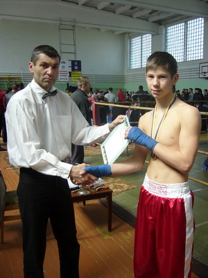 У моего воспитанника Игоря Грицюка бои получились тяжелые, но тем и ценней победа. Игорь, а ему только исполнилось 18 лет, имеет 1-й спортивный разряд, выступал среди взрослых в разделе лайт- контакт и в разделе фул- контакт. Соперники же у него оказались и старше, и опытнее. В полуфинальном бою в разделе лайт- контакт ему противостоял опытный турнирный боец, мастер спорта по боксу и кикбоксингу, спортсмен из Черновцов Александр Скороход. Игорь провел великолепный поединок, безусловно, самый важный в своей спортивной карьере. Был даже назначен дополнительный раунд. Но Игорь был лучше, он победил и вышел в финал.