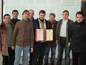 На фото: Бронзовый призер – «ДГМА-САПР» (первый слева – ведущий турнира Всеволод Петровский, г. Донецк)