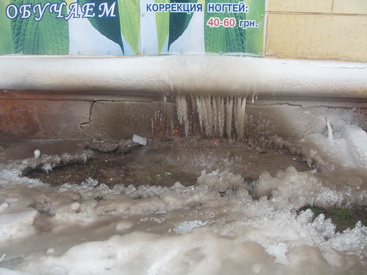 В доме № 13 по Катеринича развоздушилась система отопления. Воду приходится постоянно сбрасывать. По стенам дома течет кипяток, а замерзая, превращается в причудливые ледяные узоры.