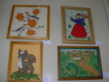На выставке представлено 100 работ от 40 участников. Тематика работ разная: сказки, православная тематика, цветы. Картины выполнены в разных техниках: кракле (работы из яичной скорлупы), экостиль (разукрашенная манная крупа), природные материалы и бисер.