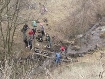 В воскресенье, 8 апреля, велосипедисты Краматорска вышли на уборку мусора в балке в парке Юбилейном.