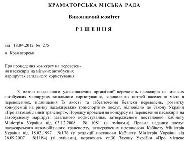 По его словам, на одном из последних заседаний транспортная комиссия рекомендовала исполкому включить в состав конкурсной комиссии двоих депутатов: Анатолия Рудейского и Владимира Ржавского. Однако, исполком не прислушался к этим предложениям и утвердил совершенно другой состав комитета.