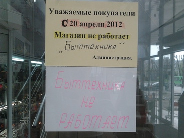 На днях в редакцию «НК» позвонил читатель и рассказал, что с 20 апреля не работает супермаркет бытовой техники «Быттехника». «НК» решили узнать по какой причине недавно открывшийся супермаркет был вновь закрыт.