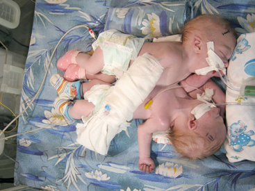 В свою последнюю беременность женщина на учете не состояла и не наблюдалась у врачей. В роддом она пришла уже в состоянии родов. Ей успели сделать ультразвуковое исследование и, увидев, что два плода лежат неправильно (ножками вниз), назначили кесарево сечение. 25 мая в шесть утра она родила сиамских близнецов женского пола, общим весом 4 кг 600 г.