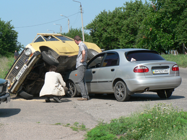 Сегодня, 20-го июня, примерно в 8.40 на пересечении улиц Школьной и Калинина произошло столкновение двух машин – ВАЗа-2101 и «Дэу Ланос».