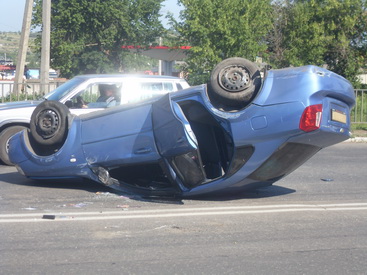 Несколько минут автомобиль Chevrolet Lacetti двигался, балансируя на двух колесах, а потом перевернулся.