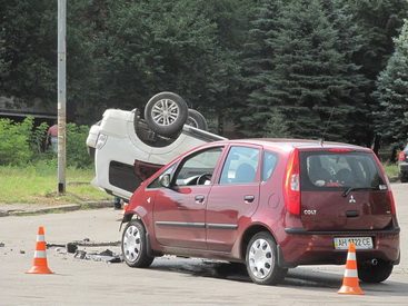 Все просто, Pajero ехал со стороны ул.Ленина по ул.Гв.Контимировцев, хотел проскочить но не успел, увидев что идет на столкновение с Mitsubishi Colt пытался уйти от удара. Резкий маневр влево а затем вправо, правые колеса разгружаются и достаточно легкого толчка в правую дверь чтобы Pajero оказался на крыше... или я не прав?