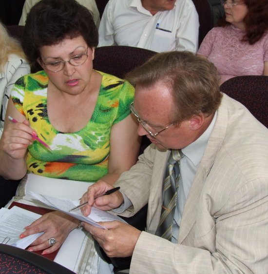 Руководитель горфинотдела Лидия Журавель и заместитель городского головы Станислав Захаров вносят последние корректировки в проект городского бюджета.