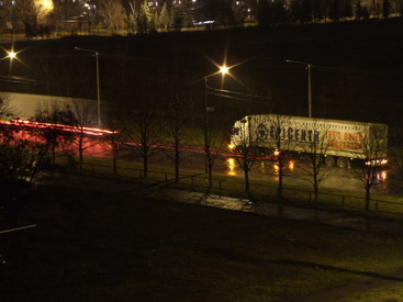 Все это с приходом темноты было загружено на две фуры, которые, судя по надписям на бортах, принадлежат компании «Эпицентр». Самое интересное, что для загрузки длинномеры загонялись на тротуар, который никто даже не пытался перекрывать специальными опознавательными знаками. Между тем, подобные погрузочно-разгрузочные работы в полной темноте угрожали не только прохожим, но и рабочим, которые производили погрузку. Все работы были завершены около 21-30 и фуры покинули улицу Дворцовую. Сейчас на пустыре остается только маленький вагончик, украшенный плакатами строительного гипемаркета «Эпицентр».