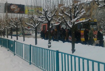 Примером этому является сегодняшняя остановка электротранспорта на улице Парковой в районе кафе "Молодёжного". Думаю все знают, что дорога там идёт на подъем, и вот с ним-то так и не смогли справиться водители нескольких троллейбусов. Колеса просто буксуют в снежной каше, которую так и не смогли убрать коммунальщики с основных автодорог Краматорска. Так что пассажирам пришлось воспользоваться более привычным средством передвижения и прогуляться по заснеженному городу пешком.
