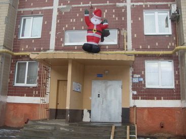 На всех остальных подъездах прикреплены гирлянды в виде снежинок и елочек, которые в темное время суток светятся.