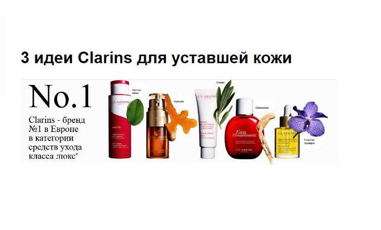 В интернет-магазине BROCARD представлена оригинальная продукция почтенного семейного французского бренда, созданного в 1954 году. Clarins – марка №1 уходовой косметики класса люкс в Европе. Компания располагает собственными лабораториями, исследовательским центром, собирает натуральное сырье из разных уголков мира, производит косметику высочайшего класса из экстрактов, вытяжек, сывороток растений.