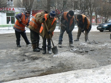 Сегодня, 15 января, работники УРСАС начали очищать от ледяного покрова лежачих полицейских расположенных на автодорогах Краматорска.