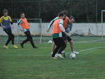 Первый день сборов для футболистов начался с вечерней тренеровки.