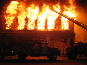 По предварительным данным возгорание произошло на первом и втором этаже гостиницы. Сейчас на место происшествия примчались пожарные машины и несколько машин скорой помощи.