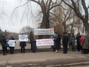 Сегодня, 12 февраля, напротив здания исполкома собралось несколько десятков краматорчан. «Сланцевому газу – нет!» - скандировали собравшиеся.
