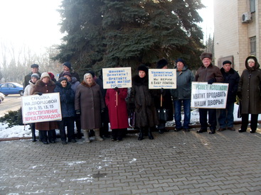 Сегодня, 27 февраля, перед пленарным заседанием сессии городского совета, около двадцати жителей улицы Дворцовой, где между домами 13 и 15 продолжается строительство торгово-офисного центра, вышли на пикет.