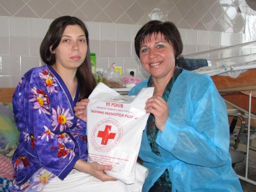 Виктория и ее новоржденная дочь Маша получили подарок от Красного Креста