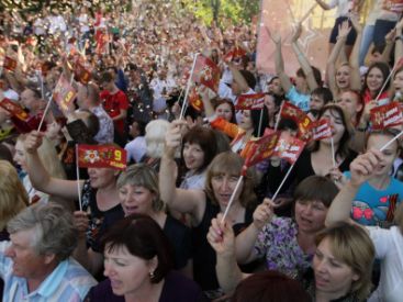 9 мая в Донецк отправилась делегация талантливых краматорчан. В ее состав вошли представители многих творческих коллективов нашего города. Возглавляла группу краматорчан начальник отдела культуры и туризма Краматорского городского совета Алена Шипова, которая также приняла участие в массовом пении.