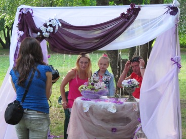 Проходя по одной из дорожек парка можно было заметить полянку, на которой расположились арка и палатка цветами. Каждому из желающих предложили поучаствовать в семейной фотосессии.