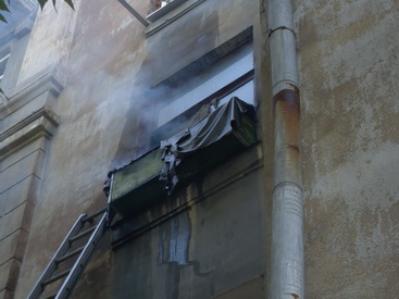 До приезда спасателей жительница четвертого этажа самостоятельно пыталась ликвидировать дым, шедший с окна квартиры на улицу. Она заливала сверху окно водой.